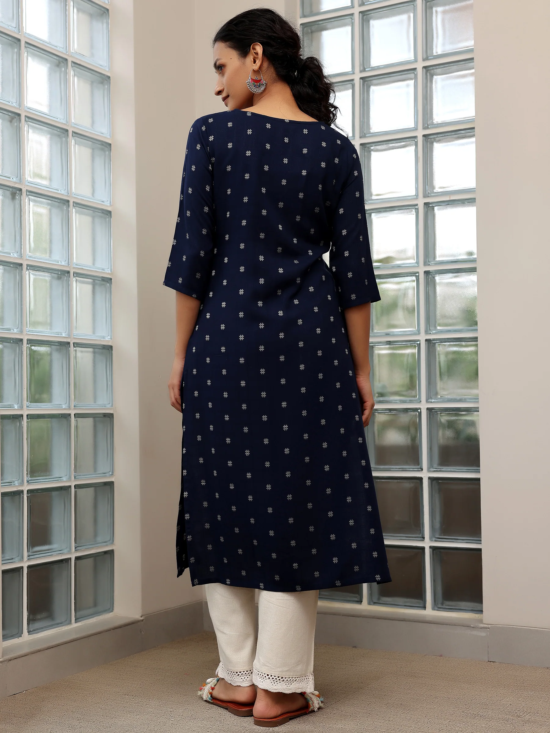 Blue Woven Design Cotton Straight Kurtas