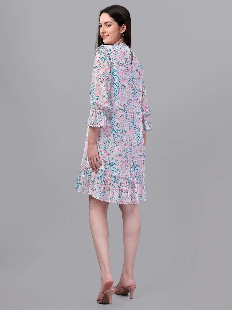DRESSES FOR WOMEN WESTERN WEAR DOTTED MULTI-COLOR DRESS.