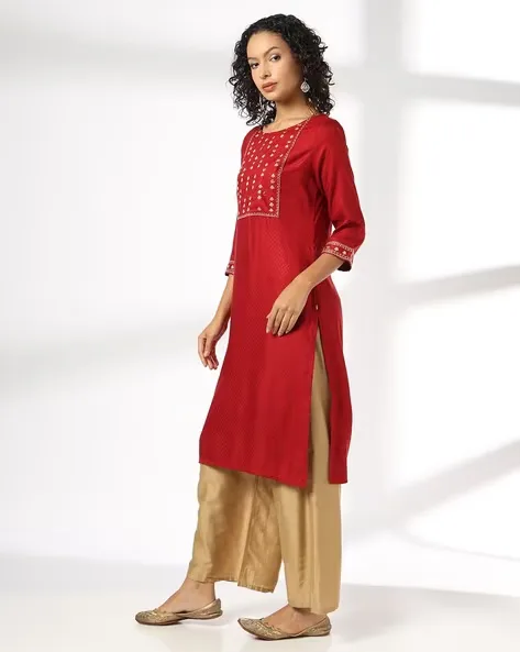 Women Straight Kurta With Yoke Embroidery