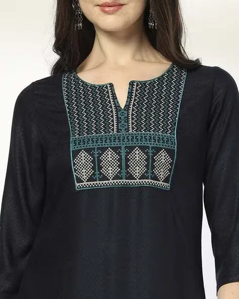 Women Zig-Zag Cross Stitch Embroidered Straight Kurta